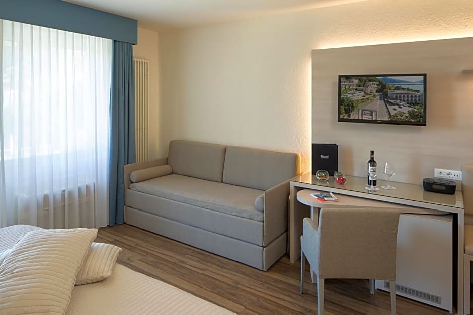 Die Zimmer verfügen über Klimaanlage, kostenfreie Pflegeprodukte, ein Bidet und Schallschutz sowie eine Badewanne. Zusätzliche Ausstattungsmerkmale sind Terrasse, Garten, Balkon sowie Fahrstuhlzugang zu höheren Etagen und Seeblickoptionen. Das Hotel befindet sich in der Via Campione 62 in Lugano, Schweiz und hat 653 Bewertungen.